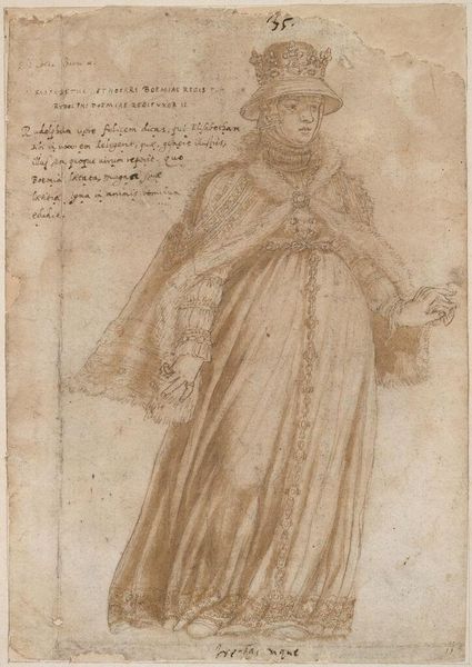 Editor: This is Hans Holbein the Younger's "Portrait of Jane Seymour," created around 1537 using pencil on paper. It’s incredibly delicate. I am really struck by the precision of the lines and how much they convey, even without color. What details do you notice first, or how do you interpret this piece? Curator: It's almost haunting, isn’t it? I see a woman caught between worlds, really. Holbein's preparatory sketches always possess an intimacy the final oil paintings, grand as they are, sometimes lack. Look closely at the mouth. See that slight downturn? He’s captured a fragility there, and perhaps even a quiet resignation. She was, after all, Henry VIII's third wife, and the pressure…one can only imagine. Do you notice how much detail he includes in her headdress and jewelry, and how comparatively little in the face itself? It’s all suggestion, atmosphere, really. Editor: That’s a fascinating point about the headdress versus the face. I hadn't thought of it like that. It’s as if the accessories are loud, drawing all of the attention to them, but her face feels… muted, like it almost recedes into the background. Curator: Precisely! The opulence screams, while she whispers. What might Holbein be saying there, do you think, about Jane's agency, or lack thereof? Art is really about conversation through time, a connection made over what is seen and what is felt. Editor: Absolutely! It's astounding how much of a story can be told through such simple lines. Curator: And a single sketch! Editor: I agree, I’ll certainly never see Holbein's portraits in the same way. This look behind the curtains has changed my whole outlook.