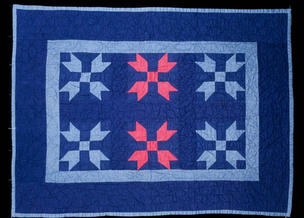 This crib quilt, made by an anonymous artist, is a beautiful object, and so much more than a functional one. The geometric forms of the stars, carefully sewn from contrasting fabrics, show an improvisational approach, the stitches a record of the maker’s process. The navy blue and peach hues, separated by the seam lines, offer an infinite tonal range. Consider each triangle and square of fabric, the individual stitches, and imagine the physicality of the quilt maker as she painstakingly assembled the whole. You can see the slight puckering of the fabric, the way the colors shift in different light. These variations give the quilt a tactile quality, making you want to reach out and touch it. This piece reminds me of the work of Gee's Bend quilters, who share the same innovative use of geometric shapes and color. Quilts like this ask us to consider how artworks can embrace, and even celebrate, ambiguity and multiple meanings.