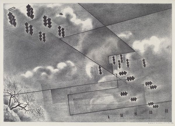 Curator: The artwork before us is M.C. Escher's "Fireworks," created in 1933 using photography. It's striking, isn't it? What's your first impression? Editor: It has a strange and dreamlike quality. The stark contrast of black and white evokes a powerful sense of awe and wonder, tinged with melancholy. Almost like a memory of shared joy, observed from a distance. Curator: I see that. It feels somewhat ceremonial, especially when we consider how fireworks often function. Notice the dense crowd, small under the enormous display, and consider how communal celebration is expressed by these artificial bursts of light. The light radiates downwards like an artificial firmament, reflecting the viewer's upward gaze and their sense of collective spectacle. Editor: Yes, the upshot perspectives! It draws the eye upward and magnifies that feeling, suggesting how civic spectacles like this can be used to unite crowds. Yet it also evokes anxieties concerning authority, perhaps—given how displays of public jubilation often work to consolidate socio-political structures and ideologies? What symbols of power do you find resonate most loudly in this artwork? Curator: Well, look closely at Escher's fascination with tessellation, and the repeating shapes he deployed throughout his career. The fireworks become less a unique display and more a constructed pattern, a sort of enforced uniformity. That touches upon psychological control through shared experience, as the repeating firework shape could symbolize ideological echoes and unified emotion, with individual autonomy potentially sublimated into a broader cultural ritual. Editor: An interesting tension, certainly. He's created a piece about how social groups assemble and act, whilst probing their subconscious impulses. And technically, I'm curious how the effect was achieved so cleanly, especially as photography in the 30s did not always possess that ability to highlight such delicate objects and shapes with clear distinction and tonality. How does he utilize the darkness, especially? Curator: Absolutely. It speaks to Escher's craftsmanship, playing negative space masterfully, letting black accentuate the bursts, perhaps inviting deeper symbolic speculation surrounding control versus the freedom of emotional expression through ephemeral light patterns! The people below, in darkness, look up toward crafted explosions. Editor: In the end, there is the enduring enigma surrounding shared emotions versus enforced social control, beautifully visualized through fleeting beauty, which the black, inky darkness truly enables. A society unified through fleeting flashes of orchestrated brilliance? I keep thinking about how relevant these considerations about freedom and authority still are today. Curator: Agreed. And its testament to Escher's understanding of how visual art becomes a potent lens to analyze cultural behaviour through carefully crafted artistic symbols!