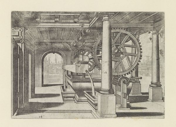 Curator: This is Robert Bénard’s “Goldsmiths' Plate Turning Lathe,” currently residing at the Harvard Art Museums. Editor: Immediately, the stark contrast between light and shadow jumps out—a real study in geometric forms. Curator: Precisely. As part of Diderot's Encyclopedia, this image embodies the Enlightenment's drive to document and disseminate practical knowledge. It's about the rise of industry and the democratization of information. Editor: Yes, and the meticulous engraving captures the textures, the interplay of circles and lines... the machine is reduced to its essence. It's almost abstract. Curator: But it's not just aesthetic. Consider the social implications: new technologies reshaping labor, the artist celebrating craft within a changing economy... Editor: I agree, this artwork is very much of its time, and also timeless in its depiction of form and structure. Curator: It’s a fascinating glimpse into the past, indeed, and a valuable record of the ingenuity of the era.