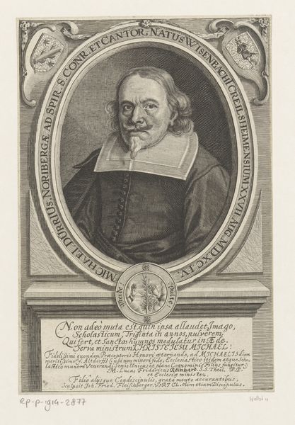 This is Charles de La Haye’s portrait of Friedrich Sohner, made sometime around the late 17th century. This finely detailed print gives us a glimpse into the world of a prominent clergyman during a period of significant religious and intellectual change. Sohner’s identity as a "Minister of the Divine Word" places him firmly within the religious landscape of the time, when the role of the church was deeply interwoven with social and political life. The Latin inscription surrounding his portrait speaks to his virtues of mind, labor, and faith, offering insight into the values and expectations placed upon religious figures. What resonates with me is how Sohner’s gaze seems to hold a weight of responsibility, hinting at the complex negotiations between personal conviction and public duty during a time of religious and social upheaval. The portrait invites us to reflect on the individuals who navigated these challenges, shaping the course of history through their beliefs and actions.