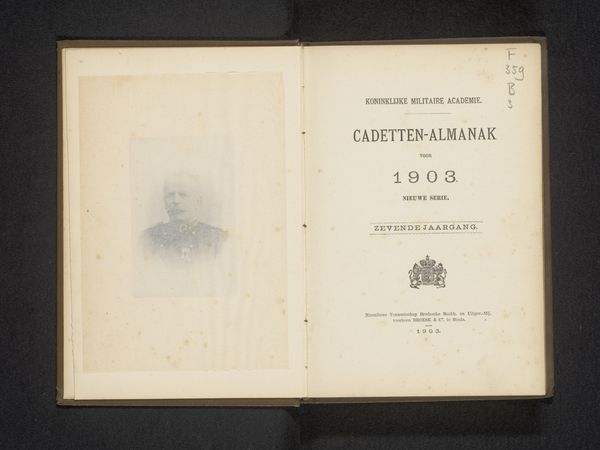 This photograph of an unknown member of the board of the Koninklijke Militaire Academie in Breda was made in 1890 by Franz Reissig. The photograph is part of the Cadetten-Almanak, which was in its thirteenth year of publication. The Almanak served as a yearbook that reflected the military culture of the time, particularly as it relates to the Koninklijke Militaire Academie. The stiff, formal pose and the subject's uniform signify the importance of discipline, order and hierarchy within the military. It’s important to recognize that these institutions played a key role in shaping national identity and power structures. In considering works like this, we might consult archival records of the Koninklijke Militaire Academie, genealogical databases, or military history resources to understand the broader context in which this image was produced and circulated. By viewing art as part of its broader social and institutional context, we gain insight into the cultural values and power dynamics that were at play in Dutch society at the time.