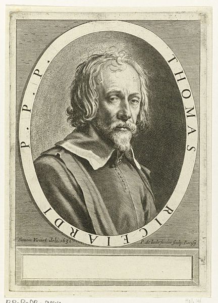 Editor: Here we have a print from 1667, "Portrait of Pope Clemens IX" by Frederik Bouttats the Younger, currently residing at the Rijksmuseum. It's quite striking. The detail in the face is really captivating, and the overall tone feels very formal and stately. What stands out to you in this piece? Curator: Well, let's consider the enduring power of images like this. Beyond simply being a portrait, it functions as a powerful symbol of papal authority. Notice the meticulous rendering of his garments, each detail carrying specific meaning related to his office. What emotions or associations are evoked by the crest below? Editor: I see what looks like diamonds, and then crosses… the shapes feel very controlled. Are these emblems specific to his family, or the papacy generally? Curator: Good question. Heraldry was exceptionally important. Those diamonds are likely associated with his family, while the keys and papal tiara signify his spiritual role and dominion. These visual cues immediately communicated power and lineage to viewers of the time. The overall composition reinforces the sitter’s virtue and legitimacy, shaping cultural memory. Do you notice how the font influences your perception of the print? Editor: It does feel very…of its time. Almost imposing? The way it’s laid out like a formal decree, reinforcing the subject’s importance. Curator: Precisely! Every element is carefully chosen to build a narrative of authority and enduring legacy. So we see how this printed portrait serves not only as a record, but as a crafted message designed to perpetuate a particular image. Editor: I never really thought about portraiture as being quite so calculated, but now I see all the layers. Curator: Exactly, and by examining those layers we gain valuable insight into the past.