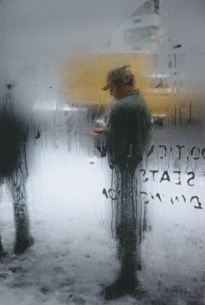 Curator: Santiago Cárdenas Arroyo’s "Him" presents us with a solitary figure under an umbrella, rendered in stark blacks and grays. It strikes me as inherently melancholic. Editor: Yes, the composition itself reinforces this feeling. Note the strategic use of negative space, the figure almost fading into the light background. It is unsettling. Curator: It speaks to larger themes of isolation and the challenges of navigating societal pressures. The umbrella, while protective, also becomes a barrier, shielding him from connection. Editor: Precisely, and consider how Cárdenas emphasizes form over detail. The ambiguity invites projection. What does it mean to obscure identity in this way? Curator: I think it opens the door to explore how notions of masculinity shape identity, particularly in Latin American contexts, where men are often expected to project strength and stoicism. Editor: It does offer a compelling visual paradox. The figure's purposeful stride juxtaposed with the vulnerability implied by the shading—it's quite brilliant. Curator: The interplay of light and shadow adds such depth to the emotional narrative; it really stays with you. Editor: Indeed. A masterful use of simplicity to convey profound emotional complexity.