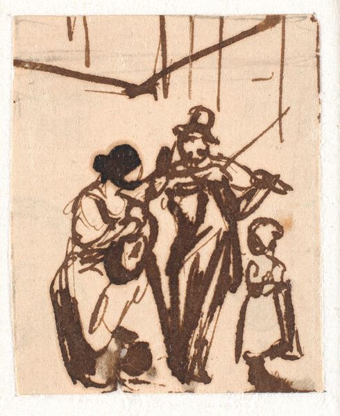 Editor: Here we have Max Unold's 1921 ink drawing, “Mother with Children Playing”. The starkness of the ink combined with the loose, almost frantic linework gives the whole piece a feeling of restless energy. What strikes you most about it? Curator: The material execution really shapes my perception. Note how Unold's choice of ink, typically associated with reproduction and mass communication, elevates a domestic scene. The labor isn’t necessarily in the creation of the image itself, but the reproduction of motherhood and its accessibility to a wider audience through prints. What societal implications might this choice reveal about the role of women and family during that era? Editor: It's interesting that you bring up reproduction! I was thinking about how expressionism, while often focused on the individual, also participates in creating these widely circulated images, almost stereotypes. Curator: Precisely! And expressionism thrived during a period marked by upheaval, industrialization and the rise of mass media. Consider the role of paper and ink – readily available materials that democratized artmaking. How might this accessibility challenge traditional notions of the art world's elite status? Is the everyday labor of motherhood made to stand alongside fine art through this material? Editor: That’s a perspective I hadn't fully considered. Thinking about the means of production alongside the subject matter offers a totally different way to understand it. I guess it highlights the potential of accessible materials to depict, and perhaps even validate, everyday experiences. Curator: Indeed! We begin to recognize that it isn't simply about aesthetic representation; it's about understanding art as a social product rooted in specific historical conditions and material realities. Thank you! Editor: Thank you. It changes how I’ll look at not only this work, but how I approach others.