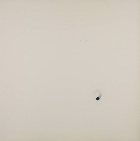 Curator: This is "Print 5" by Bernard Cohen. It’s held at the Tate and its dimensions are approximately 686 by 686 mm. Editor: At first glance, it evokes a sense of quiet minimalism. A single, dark point seems to anchor a constellation of faded echoes. Curator: The symbolism of the circle is fascinating. It’s a motif present across cultures, representing wholeness, the infinite, and the cyclical nature of existence. Editor: I wonder if the artist was conscious of the way in which repetition can also be a tool for enforcing systemic oppression. Curator: It's a reductive and intimate composition, isn't it? Perhaps Cohen invites us to find the universe in a single point. Editor: Perhaps, but it's important to remember how even the simplest forms carry the weight of cultural meaning and historical baggage. I'll be thinking about that for a while.