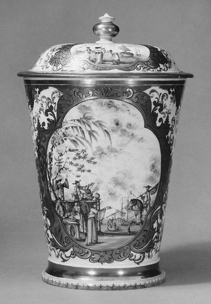 This vase was produced at the Fürstenberg factory, which began as a state-sponsored initiative in 1747 in Germany. The vase is made of white porcelain, with painted decoration and gilded details. Porcelain is essentially petrified clay, made by combining kaolin with other minerals, and firing at extremely high temperatures. This results in a very hard, translucent material, prized for its smooth surface and ability to take fine decoration. Here, the factory artists have used the material’s receptive surface to their advantage, carefully painting a portrait medallion and adding delicate gilding. These kinds of details required highly skilled labor, divided between modelers, painters, and those responsible for firing in the kiln. The final result is one of luxury, intended for aristocratic display. Considering porcelain production in this period, the vase becomes more than just a pretty object. It is a testament to craft skill, industrial organization, and the complex social dynamics of 18th-century Europe.