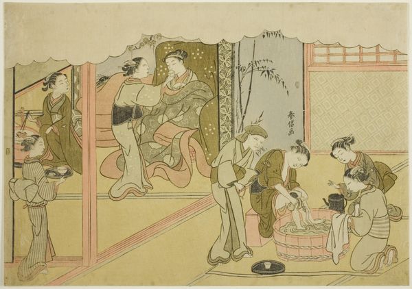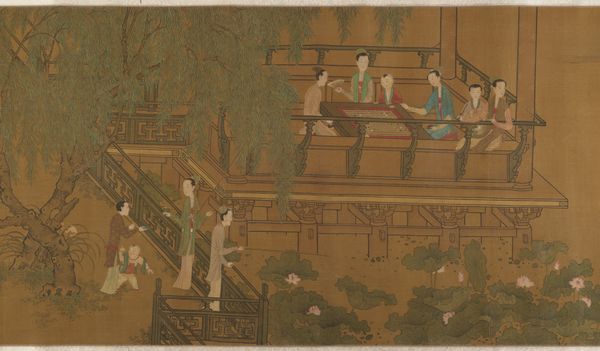 Qiu Ying painted this scene of the Han Palace in the 16th century, using ink and colors on silk. The silk is an important material to consider here. Its smooth, absorbent surface allows for delicate brushstrokes and vibrant colors, essential for capturing the scene's intricate details. The artist's skill is evident in the control of the ink and pigments, and the use of fine lines to define the figures and architectural elements. These processes speak to a long tradition of Chinese painting, where mastery of materials is paramount. Yet, silk was also a luxury product, central to the Chinese economy. Its production involved a workforce, from farmers to weavers, highlighting a wider context of labor and trade. By depicting the opulence of the Han court, Qiu Ying also hints at the economic systems that supported such grandeur. Ultimately, understanding the material and its making allows us to appreciate the artwork as more than just an image.