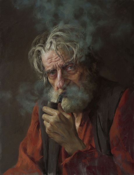 Valeria Duca created this portrait with oil on canvas, calling it "Confrontation with Myself." The artist presents a self-portrait, a genre historically entwined with themes of identity and self-expression. The direct gaze and clasped hands suggest introspection and a moment of intense self-awareness. The use of dark colors and chiaroscuro lighting heightens the drama, drawing the viewer's attention to the subject's face and hands. It seems to ask: What does it mean to be 'oneself' in the context of modern social pressures? Understanding the artist's background – her personal history, social context, and artistic training – could offer deeper insights into the motivations behind the creation of this self-portrait. Through thoughtful analysis and historical research, we can gain a more comprehensive understanding of this work.