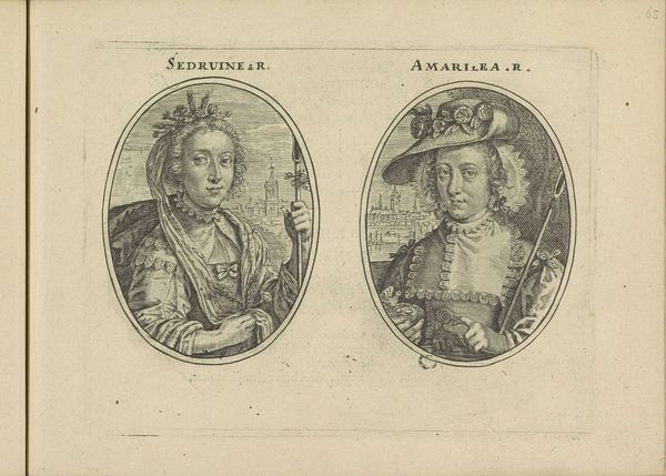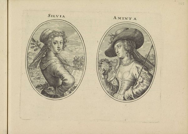 Crispijn van de Passe the Younger created these portraits of two unknown women, both depicted as shepherdesses, as an engraving. Made in the Netherlands, this double portrait presents an intriguing view into the social and cultural norms of the 17th century. The women, identified as "Alutea" and "Rosea", are idealized figures, embodying pastoral simplicity and elegance, set against backdrops of cityscapes. Their roles as shepherdesses reflect a broader fascination with the idyllic countryside, a theme often explored in art and literature of the time. The portrayal of women in such roles can be seen as both a commentary on and a reinforcement of social expectations. How do these images reflect the status and roles of women in Dutch society at the time? Were they intended as mere aesthetic objects, or did they carry deeper social or political meanings? To fully understand the portraits, one might delve into emblem books and contemporary literature that explore the symbolic meanings of the pastoral figures. By examining these historical sources, we can gain a richer understanding of the artwork within its specific social and institutional context.
