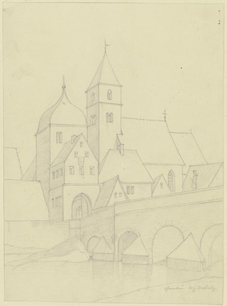 Curator: This pencil sketch, “De Dom van Halberstadt,” is potentially from 1867, attributed to Jan Striening. What feelings does it evoke as you gaze upon it? Editor: Hmm, it feels spectral, almost unfinished. The scene appears shrouded in mist, which softens the architecture but makes me wonder what kind of social factors were happening to inspire a work like this? Curator: Absolutely! The softness of the pencil lines adds to the dreamlike quality, almost like glimpsing a memory. I sense that the paper’s texture adds to that fleeting moment, creating depth and shadowing for an ethereal scene. Editor: The sketch prioritizes verticality, with the cathedral dominating. One thinks about the effort needed for drawing, acquiring, and transporting all those tools and papers, versus just buying the image readymade in photographic form! It really is emphasizing a singular practice when, even then, other alternatives are available. Curator: It makes me wonder, was he simply trying to create an accurate architectural depiction or was Striening striving to capture its symbolic power? A connection to something beyond the purely physical? Editor: The contrast of scale—the immense cathedral juxtaposed with the more modest buildings—also touches on urbanization, where new economic structures began shaping social stratification as they changed the labor economy from within cities. I imagine how many materials were needed just to lay a single foundation. Curator: I do think it echoes a Romantic sensibility though. It's this evocative image, more than just technical blueprints or construction plans. Editor: Romantic for the artist, certainly, yet the pencil medium lends itself well to mass-produced images for those interested in architecture to replicate and implement similar designs, highlighting the availability and accessibility of materials for the budding enthusiast and architectural tourist. Curator: In any case, I am intrigued and amused to observe these differences and what both draw us to this image! Editor: Agreed! Viewing and understanding historical practices helps remind me how to contextualize materiality within a historical scope.