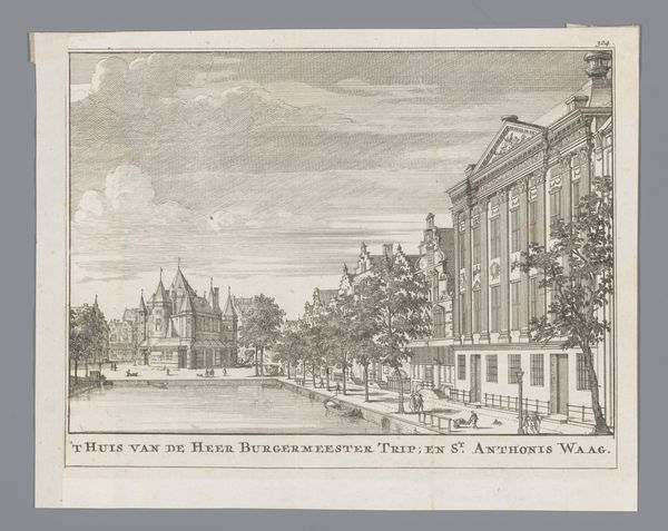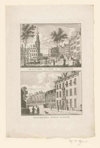 Johannes Hilverdink created this print, "Gezichten op Synagogen in Amsterdam en twee graftekens", using etching. This work offers a glimpse into Amsterdam's religious landscape. The print depicts two synagogues, each serving distinct Jewish communities: the Portuguese Jews and the High German Jews. In the 19th century, Amsterdam was a hub of Jewish life, enriched by Sephardic and Ashkenazi traditions. Hilverdink’s decision to represent both communities invites reflection on identity, belonging, and the nuances within Jewish culture. Notice the architectural details and the figures populating the scenes; they prompt us to consider the daily lives of these communities and the role of religious spaces. The inclusion of gravestones serves as a reminder of history, memory, and the continuity of tradition. This print emphasizes how communities shape their identities through sacred spaces, reflecting both their unique heritage and their place within a larger society.