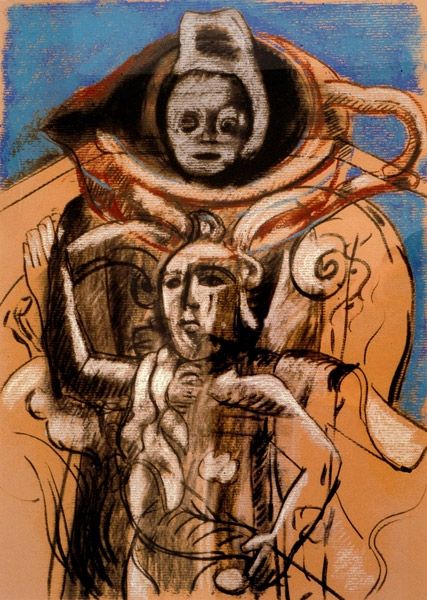 Francis Picabia created this painting titled Catax, and it is currently located here at the Tate Modern. The artwork uses traditional art materials like watercolor and ink, applied in thin layers on paper. Picabia's method involves layering images, using the translucency of watercolor to blend distinct figures. The technique reflects the artist’s engagement with both traditional fine art practices and contemporary aesthetics. He blurs boundaries between these categories. The medium allows for fluidity and spontaneity, visible in the layering of forms and the delicate washes of color. The choice of paper as a support also suggests a level of intimacy and immediacy. The light touch involved stands in contrast to the more labor-intensive processes that are often associated with high art. Ultimately, by focusing on the materials and methods used to make Catax, we can appreciate how Picabia challenges traditional distinctions between fine art and craft, inviting viewers to reconsider the value we place on different modes of artistic production.
