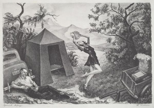 Robert Jackson’s print ‘A Georgia Scene’ is made with what looks like graphite on paper, and it’s all about the layering of marks to make a picture. There’s a real sense of depth in this print, created through the build up of dark and light tones. I love how Jackson uses the graphite almost sculpturally, pressing harder in some areas to create deep shadows, and then lifting off to let the light in. Look at the marks around the edges of the trees and the little shack in the middle. It's as if each tiny stroke is a piece of the puzzle, slowly forming a cohesive whole. The lines are smudged in places, giving a hazy, dreamlike feel to the scene, like a memory fading at the edges. This reminds me a bit of the work of Kathe Kollwitz, who was also interested in the lives of ordinary people. Both artists embrace ambiguity, leaving space for us to bring our own stories and feelings to the artwork.