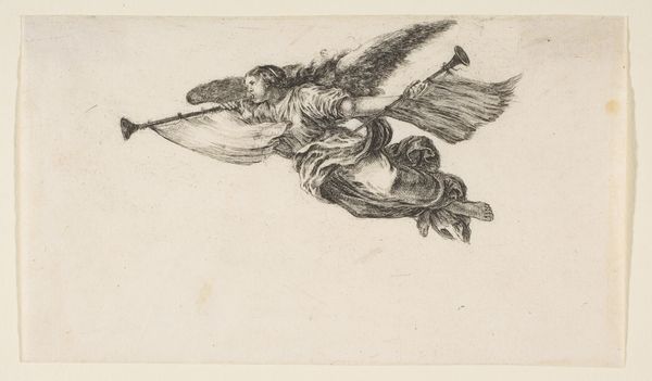 Editor: Here we have an engraving, "Knight on Horseback in Armour," created after 1647, author unknown. I find its attention to detail remarkable, and the confident posture of the knight truly striking. What's your read of the piece? Curator: Ah, a knight errant frozen mid-charge! This anonymous piece, to me, feels like a window into a past romanticized, a world viewed through rose-tinted spectacles, long after the clang of real armor had faded. The lines, so meticulously etched, give it this almost…dreamlike quality, don’t you think? It’s more a symbol of chivalry than any grounded, gritty reality of the battlefield. Editor: It definitely feels more symbolic than documentary. How much can we actually glean about the period based on these symbolic interpretations? Curator: I think we see a yearning for an idealized past—notice the knight's stance, the regal lions emblazoned everywhere, even the horse seems to float! It's a manufactured image of power, created possibly to instill national pride or to remind people of bygone 'glory days'. It probably has less to say about how people fought and more about how they wanted to be perceived. Doesn't it remind you of those epic poems where heroes are larger than life? Editor: I can see that. Almost like visual propaganda. So, looking beyond face value can unlock an entirely different story, which changes my interpretation of its original purpose entirely. Thanks! Curator: Indeed, seeing art this way isn’t about dismissing what’s on the surface but questioning *why* it’s presented in that way. Isn’t it delightful?