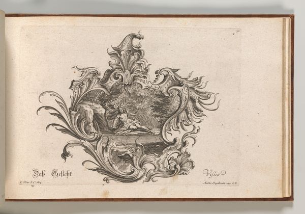 This is Johann Georg Pintz's "Design for a Cartouche and Representation of 'Hearing'," a print that's part of a larger series exploring the five senses. This piece invites us to consider how hearing was conceived within the social and cultural framework of its time. The central figure plays a harp, surrounded by listeners, all framed by elaborate ornamentation. But this isn't merely a depiction of music. It reflects the era's understanding of sensory experience as curated and refined, a privilege often associated with the upper classes. The very act of framing hearing within a cartouche suggests a desire to contain and control this sense, to present it as a symbol of cultivated taste. Consider how the visual language reinforces social hierarchies, where access to harmonious sounds and the appreciation thereof might have been perceived as a marker of status. How does this historical perspective challenge or affirm our contemporary understanding of sound and listening?