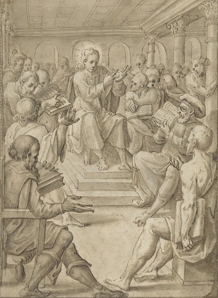 This drawing, Sacrificial Scene, was made by Gian Francesco de Maineri around the turn of the 16th century with pen and brown ink on cream laid paper. Religious sacrifice, a ritual of offering something to a deity, was a widely practiced social activity in Renaissance Italy, an intersection of sacred and social life. In this drawing, the artist presents an imagined scene of Roman sacrifice, a highly visible form of social performance. Maineri has dressed the figures in costumes that recall the exotic orient, using the codes of dress to denote foreignness and the artist’s own access to a wider world of cultural signs. Note also the classicizing architectural setting with its statue of what appears to be a Roman deity. The architectural elements are a common feature in the art of this period, as is the motif of sacrifice itself. To truly understand Maineri’s work, we must consider the complex interaction of social, religious, and artistic factors at play. As historians, we consult written records, visual sources, and material evidence to reconstruct the past. By understanding the social and institutional context in which art is made, we can gain a richer appreciation of its meaning and significance.