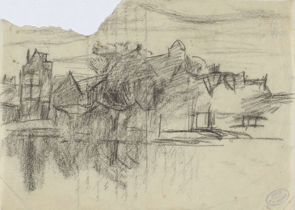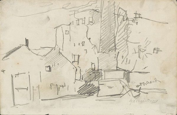 This quick sketch of rooftops, possibly in Delft, was made by George Hendrik Breitner using graphite on paper. The drawing's impact lies in its skeletal structure where the lines articulate architectural forms that create a sense of depth and perspective. Breitner's approach is analytical. He uses lines to dissect and reconstruct the buildings’ geometry into a play of planes and angles. This technique reflects a broader artistic interest in structural clarity, reminiscent of cubist explorations of form. The contrast between the dense, shaded area on the left and the open, airy spaces on the right creates a visual rhythm that draws the eye across the composition. The sketch challenges traditional notions of representation by prioritizing an exploration of form over realistic depiction. The choice of graphite allows for varied tonal values, enhancing the sense of volume and shadow and offering an interpretation that invites ongoing contemplation and imaginative engagement.