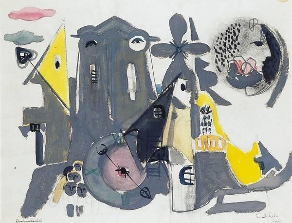 Curator: Here we have Takashi Murakami’s "DOB in Pure White Robe," an acrylic on canvas work from 2013. I'm struck by how Murakami marries high-gloss surfaces with a kind of distressed, almost industrial backdrop. Editor: It's interesting how childlike and almost saccharine the central character is in contrast to the harsh, silvery background. It evokes a sense of unease, almost as if innocence is being threatened. Curator: Absolutely, and that tension is vital to understanding Murakami’s practice. The surface of the canvas, you see, is almost a commodity fetish; meticulously manufactured, embodying Japan's postwar economic boom and consumer culture, and all that labor embedded. Editor: Yet, the character DOB seems to have roots in much older traditions of Japanese art and culture. The large eyes are reminiscent of anime characters, which in turn, owe something to Buddhist imagery – they signify an open, all-seeing awareness. Curator: The material properties definitely emphasize that relationship, because he’s literally building on the foundations of a kind of industrial paint base. Also, the title implies an innocent purity countered by the slick manufacturing, so the reading is much more multi-layered. Editor: Precisely! And DOB himself is a complex symbol, isn’t he? Part Mickey Mouse, part anime creature, he represents Murakami’s concept of the "superflat," a flattening of historical depth, social commentary, and even emotional range. It's all there in the imagery. Curator: Right. In production terms, his method incorporates a factory-like studio system with many hands at work. In many ways, he critiques, or mirrors our current economy with the consumption and output on a massive scale, by calling back to art historical approaches, almost making an art historical artifact in real time. Editor: Seeing DOB in "Pure White Robe", you can’t help but wonder about the complexities of contemporary culture and the artist's reflection. Curator: Indeed, there are processes that question what is really hand-made versus mass-produced, which seems relevant today.