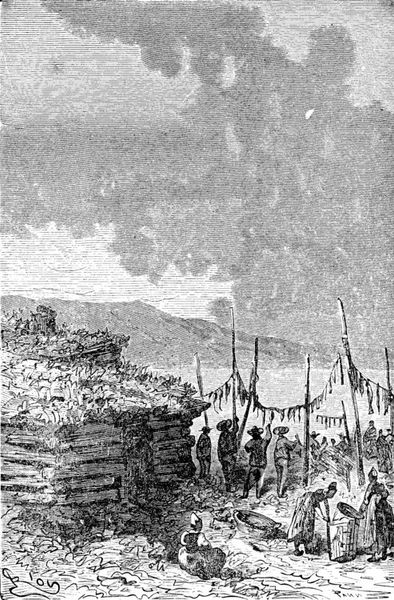 Edouard Riou created this illustration for Jules Verne's novel, "Journey to the Center of the Earth". The image encapsulates the spirit of 19th-century adventure and scientific exploration. Riou, working in a time when the world was rapidly being charted and understood through scientific means, contributes to the sense of excitement and discovery. The image depicts a scene of embarkation, with figures gazing out over a body of water towards a town nestled beneath imposing mountains. It evokes a sense of anticipation and the unknown. The landscape itself, rendered in stark detail, speaks to the harsh and unforgiving environments that explorers often faced. It mirrors the period's complex relationship with nature, one of both awe and a desire to conquer and understand. What does it mean to dream of the center of the Earth, while standing on its surface? The image captures this tension. The journey, both literal and metaphorical, is a profound statement about humanity's quest for knowledge and the emotional resonance of exploration.