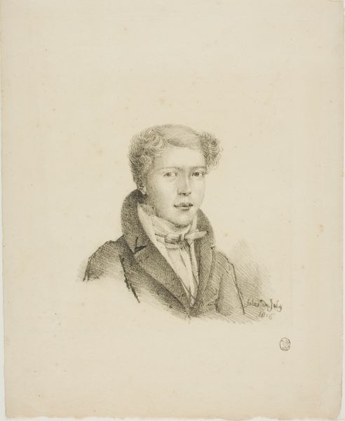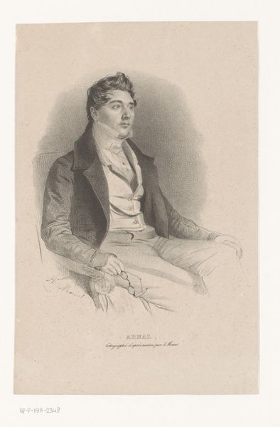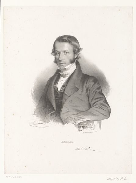 Johan George Lodewijk Rieke created this portrait of Henri Zeeman using lithography, a printmaking technique, on paper. Lithography, invented in the late 18th century, allowed for relatively quick and inexpensive reproduction of images, a departure from the labor-intensive methods like engraving. The process begins with a smooth stone or metal plate. The artist draws on the surface with a greasy crayon, then treats the plate so that ink adheres only to the drawn areas. The plate is then pressed onto paper, transferring the image. Looking closely, you can see the subtle tonal variations achieved through the lithographic process. The medium lends itself to capturing the fine details of Zeeman's face and clothing. Lithography’s accessibility democratized image-making and catered to a growing market for portraits and illustrations. This print reflects a shift in artistic production, one increasingly shaped by industrialization and consumer culture. Recognizing the labor and materials involved in processes like lithography invites us to reconsider the art object’s place within broader economic and social systems.
