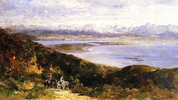 Maurice Braun painted "Lilacs and Mountains" with oils on canvas. Look closely, and you'll see that Braun is a master of understatement. The paint is applied in thin, washy layers, allowing the texture of the canvas to peek through, especially in the sky. There's a real sense of atmosphere, of light filtering through the haze. The color palette is muted, mostly earth tones and grays, with just a hint of purple in the distance. It's a painting that rewards slow looking, inviting us to get lost in its details. Note the brushstrokes in the foreground, loose and gestural, suggesting the tangle of undergrowth. It's almost abstract! But then, as our eyes move towards the horizon, the forms become more defined, resolving into mountains and water. The surface has a velvety quality. Braun seems to have taken a leaf from Corot, who also painted landscapes with a quiet, contemplative mood, embracing ambiguity over clarity.