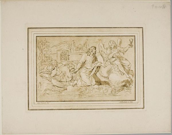 Gabriel de Saint-Aubin created this drawing, celebrating Louis XVI’s return to Paris after his coronation, using pen and black ink. The composition teems with life, almost spilling out of its tight frame. Saint-Aubin masterfully uses hatching and varied line weights to create depth and movement. Observe how the dense, frenetic lines at the center, around the carriage, give way to lighter, sparser marks at the periphery, suggesting a receding crowd. The artist’s use of perspective is intriguing. It is not linear, but rather intuitive, emphasizing the event's symbolic importance over strict spatial accuracy. Figures are rendered with an almost caricatured quality, their gestures exaggerated, blurring the line between celebration and chaos. Saint-Aubin’s approach, therefore, challenges traditional notions of royal portraiture, hinting at underlying social tensions through formal means. Ultimately, this drawing transcends mere historical documentation, becoming a commentary on the spectacle of power and its reception. Saint-Aubin invites us to look beyond the surface, to question the narratives encoded within the visual.