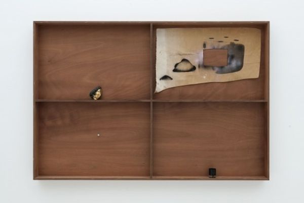 Curator: This is Fernanda Fragateiro’s "Unbuilt from ‘Materials Lab,’" and it’s a rather intriguing piece. The work combines sculpture and photography, offering a meditation on form and space. Editor: It strikes me as a very quiet and minimalist work. The pale wood and simple geometric shapes create a sense of calm, almost architectural serenity. Curator: It's interesting you say that; Fragateiro's work often engages with architectural and urban themes, reflecting how we construct our environments and, by extension, our lives. Think about the title itself. Editor: Yes, "Unbuilt." It hints at unrealized potential, perhaps critiquing the structures we do create versus those we could. The gallery context in the photograph becomes another layer, highlighting display conventions. Curator: Precisely. The materiality also bears noting. The wooden box is integral to the artwork's statement. The tactile experience combined with the detached photograph creates a tension. Editor: So, it’s an object about other objects, framed by context. I think I’m beginning to understand it much more clearly. Curator: Agreed. And with that, we hope you'll explore this fascinating piece further!