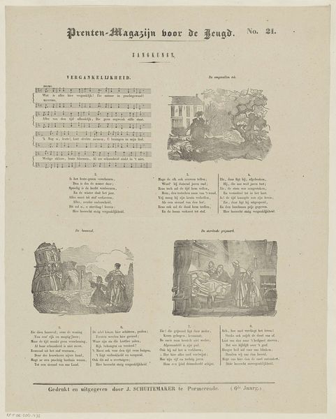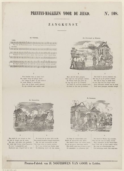 This printed page, “Vissen,” was produced by Jan Schuitemaker, and features multiple panels and text. The print medium is lithography, a process where images are drawn on stone or metal then transferred to paper. It allowed for relatively quick and cheap reproduction, ideal for illustrated magazines like this one. Note the contrast between the smooth surface of the paper and the fine linework of the images. Lithography enabled Schuitemaker to create detailed scenes that evoke a specific time and place, likely for mass consumption. Consider how the process of printing itself democratized art, making images accessible to a wider audience beyond the elite. This reflects a shift in the art world towards broader social engagement, contrasting with older hierarchies. The printed image becomes a commodity, circulating within networks of distribution and consumption. This challenges traditional notions of the artwork as a unique, handcrafted object. Instead, we see art as a product of industrial processes, embedded in wider social and economic systems.