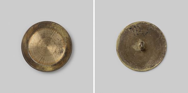 Curator: Here we have a bronze medal from 1830, created in honor of Louis Joseph de Potter. Editor: Immediately, I’m drawn to the contrast between the stern profile on the medal itself and the almost delicate weave of the ribbon. It feels... almost contradictory. Curator: Precisely. The portrait is neoclassical in style, attempting to capture an idealized, almost Roman, sense of authority. Observe the sharp, clean lines used to render his profile. It speaks to the ideals of the era, mirroring classical sculptures and the conceptual values they enshrined. Editor: And yet, that ribbon. It’s got this lovely, faded quality, almost like a watercolor painting gone to seed. I mean, the metal is powerful, stoic, right? History as this immutable, shiny thing. But that ribbon feels…human. Like something that fades and frays. Curator: A keen observation. The contrast is potent, embodying the tensions between revolutionary zeal and the realities of its historical enactment. Editor: It also makes me wonder about the hands that would have held it, pinned it. You know, imagining the weight of that medal, literally and figuratively. And wondering what all those small, personal interactions with history might tell us about revolution. The texture— both real and imagined, becomes, I suppose, a vessel for lost sensory history. Curator: An insightful way to phrase the material engagement. One must recall that the award of this object solidified De Potter's public personae after he served time in prison as a dissident of Willem I’s rule over Belgium, which may contribute further emotional valence, if not historical value. Editor: Absolutely. Ultimately, the artwork becomes almost like a physical echo of these transformative historical currents rippling around its image. It is, after all, that history continues to echo right through our hands even today.