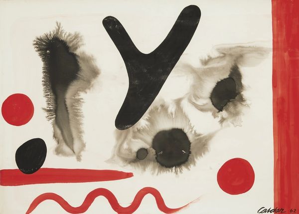 Editor: This print, "Sleep My Angel," by Alan Davie, uses bold shapes and colours that feel almost primal. How do you interpret this work in light of Davie's other pieces? Curator: Davie often explores subconscious expression and spiritual themes. This print, with its sharp contrasts and ambiguous forms, seems to reflect a tension between opposing forces – maybe the struggle for peace within oneself or a commentary on societal discord. How do you think its abstraction communicates meaning? Editor: I see it as a breakdown of form, reflecting post-war anxiety and the questioning of established norms. It feels like a visual scream! Curator: Precisely. Davie's work aligns with the post-war artistic movements seeking to challenge and dismantle traditional representations. He urges us to confront the complexities of existence. Editor: Thank you, that really helped me see the deeper context within the work. Curator: Indeed, it speaks volumes about its time, and perhaps about our own.