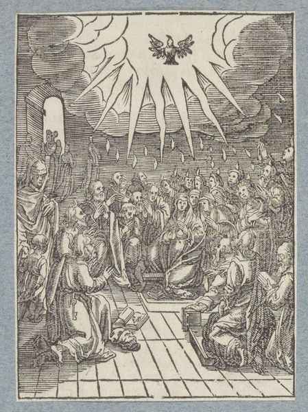 Marcantonio Raimondi made this engraving of "The Pentecost" after a design by the famous German artist Albrecht Dürer. Produced in Italy in the early 16th century, it depicts the moment when the Holy Spirit descended upon the Virgin Mary and the apostles. The image's visual codes, like the dove representing the Holy Spirit and the radiating lines suggesting divine light, draw heavily on established Christian iconography. But it's worth noting that printmaking at this time played a crucial role in disseminating religious ideas, especially during the Reformation. Raimondi’s work, made for the market, helped to spread the imagery of the northern Renaissance across Europe. Understanding this work fully requires us to examine the complex relationship between artists, printmakers, and the institutions of religion and commerce. We can consult period documents, religious texts, and art market records to further illuminate the social conditions that shaped its production and reception. By understanding the context, we can better understand how art reflects and influences cultural values.