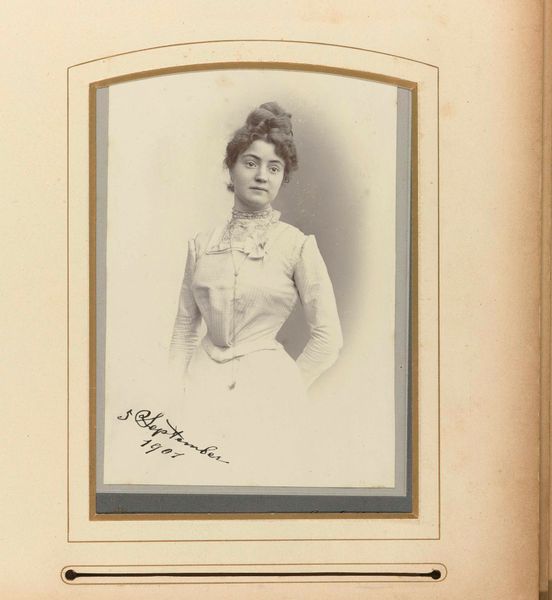 This portrait of Jeanne Henriette Reine Reyneke van Stuwe was made by an anonymous artist and it's a photograph. I find the muted sepia tones so interesting, especially as they create a nostalgic, almost dreamlike quality. It's like the whole process of making and viewing the image becomes about memory, about preserving a moment in time. Look at how the light catches Jeanne's face and hair – that soft focus really emphasizes her features. The artist has captured a sense of depth through the subtle play of light and shadow, giving the image a painterly feel despite being a photograph. Notice too, the inscription, flowing across the surface, which adds a personal touch, like a handwritten note. The effect reminds me a bit of Julia Margaret Cameron's portraits, where the focus is less on clinical detail and more on capturing the essence of the sitter. It makes you wonder about the relationship between the photographer and Jeanne, and the stories behind the image. Art, after all, is about asking questions, not necessarily finding answers.