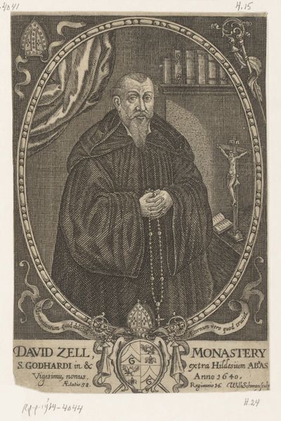Editor: This is Nicolas de Larmessin's "Portret van Rosso Fiorentino," from 1682, held here at the Rijksmuseum. It’s a print, an engraving, really detailed. It's giving me strong Baroque vibes, all those swirling lines...I wonder, what’s your take on this portrait? Curator: Ah, yes. An engraving that tries to hold a man. Larmessin's Fiorentino stares off, seemingly lost in thought, a cascade of beard consuming his chest, and the eyes...have you ever noticed how much the eyes communicate in these portraits? What do they tell you, here? Editor: Well, I see… determination? Maybe a bit of melancholy? It's hard to tell. What strikes me is the detail in his hands—they look so expressive! Curator: Exactly! Look how the lines carve out his veins, his knuckles, as if revealing the map of a life dedicated to craft. There's such care lavished on hands that themselves are the vehicle for creating beauty. It speaks to the very nature of artistry, doesn't it? An interesting juxtaposition. It looks like the artist is making an implicit link between artistry and perhaps aging as well, since those kind of very careful lines detailing someone's hands don't usually apply to a young subject. Editor: That’s a great point. I hadn’t considered that the artist wanted to say something about aging through his rendering of the hands and maybe the facial details. So interesting. Curator: Absolutely. Portraits like this whisper stories of artists honoring other artists. I can appreciate Larmessin capturing the humanity, capturing the tools, and his hand perhaps suggesting something about the person. In some ways all art is really about memory. Editor: Memory—I love that thought to leave with.