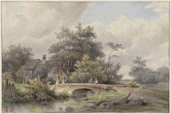 Egbert van Drielst painted "Farms on the Fringe of a Wood" with oil on panel, offering a glimpse into the Dutch countryside. Note the diagonal recession into space, orchestrated through subtle gradations of light and shadow. The formal structure of the painting guides our gaze from the dark, textured foreground, punctuated by a reflective pool, to the lighter, more open fields in the distance. Consider how van Drielst uses the trees as framing devices, their branches creating a canopy that both defines and obscures the scene. This play of enclosure and openness speaks to the Romantic era's fascination with nature as a space of both refuge and the sublime. The unassuming figures and humble dwellings scattered throughout the composition evoke a sense of rural simplicity and harmony. This landscape doesn't just depict a place; it articulates an ideological position, one that privileges the natural world as a space of authentic experience over the artificiality of urban life. The formal elements of this artwork function not merely as aesthetic choices but as carriers of cultural meaning.