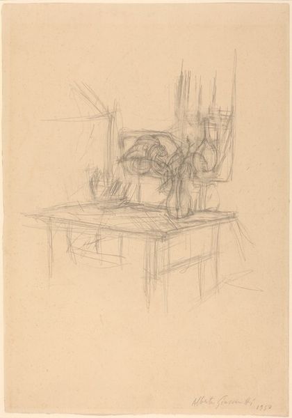 George Hendrik Breitner made this drawing, 'Horses with artillery,' using graphite. The sketchy lines and unfinished appearance create a raw and immediate feel. The composition, dominated by the cannon and suggestion of horses, conveys a sense of industrial power. Breitner's technique reflects a shift away from traditional academic art. He captures the essence of movement and modernity through a fragmented and dynamic approach. The lines, though simple, suggest the weight and scale of the machinery, reflecting an interest in the structures of urban life. This sketch challenges conventional artistic values by embracing the everyday. Breitner is using the semiotics of drawing to capture a moment. Through his choice of subject and style, Breitner prompts a re-evaluation of what is considered aesthetically worthy. The sketch becomes a signifier of modern life.