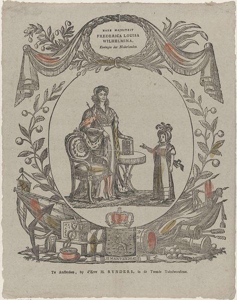 This lithograph titled ‘France’ from the International Cards series was issued by Kinney Bros. The small-scale card features a meticulously arranged tableau of French national symbols against a dark ground. The composition balances several distinct elements: the French flag, draped to reveal the letters 'RF', a portrait of General Boulanger, and the prominent Legion of Honour medal. Note how the red ribbon loops around the medal's wreath and the flag's finial, creating a visual link that unifies these elements. The ornate border, with its stylized swirls, frames these symbols, setting them apart in a world of their own. Such arrangements are not merely decorative; they function as visual codes. In semiotic terms, the flag, medal, and portrait all stand as signifiers of France's identity, military strength, and national pride. This careful structuring and layering of symbols invite a deeper reading into the values and ideals that the Kinney Bros. sought to evoke in their audience. Consider how the formal arrangement of symbols work together to construct a particular image of France, one that balances tradition with contemporary identity, inviting endless interpretation.