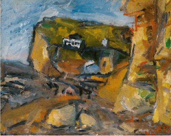 Ion Pacea created this painting, Marina, using bold colors and simplified forms to capture a vivid landscape. The composition is divided into distinct horizontal zones: a deep blue sky contrasts with the vibrant greens and yellows of the land. Pacea’s brushstrokes are evident in the textured surfaces, giving a tactile quality to the scene. The abstract shapes suggest natural elements without explicitly defining them, which invites us to interpret the landscape through our own experiences. Pacea challenges traditional landscape painting by reducing it to its essential components. This simplification reflects a modern sensibility, focusing on the intrinsic qualities of color and form over detailed representation. The painting’s structure, with its stark color contrasts and elemental shapes, reflects a broader trend in modern art toward abstraction. Through these formal choices, Pacea invites us to reconsider our relationship with the natural world, viewing it not just as a visual experience but as a field of dynamic forces expressed through color and form.