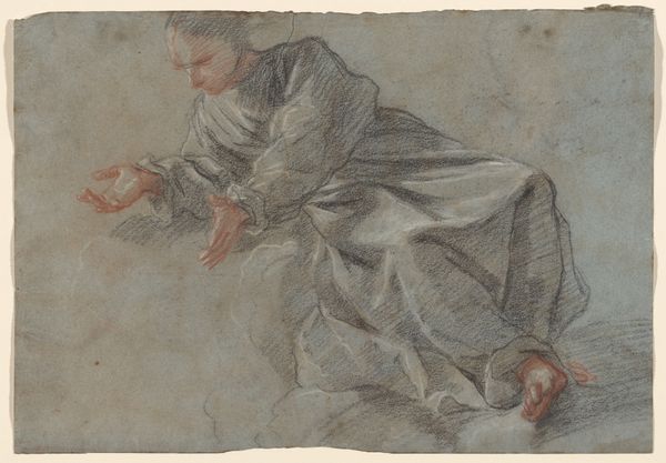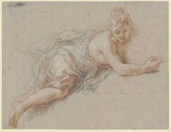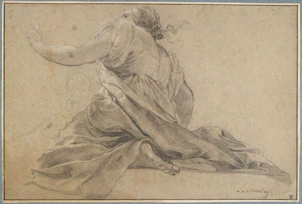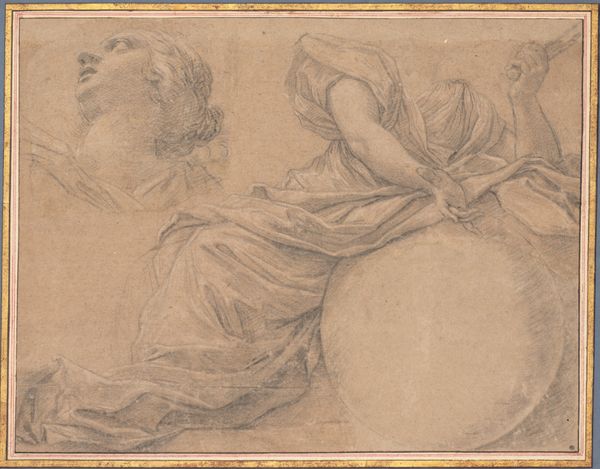 Giacomo Zoboli’s double-sided sheet, now at the Met, is made from paper and red chalk. Paper is a relatively common material, yet it serves as a ground for Zoboli's skilled draftsmanship, elevating the art above its humble origins. The drawing captures studies of draperies and a standing female nude. The red chalk, also known as sanguine, is key here. The material lends itself to warm tones and subtle gradations, creating a sense of depth and volume. It invites the viewer to consider the weight and fall of the fabric, and the soft contours of the human form. Drawings like this involved a distinct economy of labor and skill. Zoboli would likely have been working in a busy studio, where efficient workflows were essential. The red chalk medium allowed for quick, expressive marks, but demanded a high level of control. In considering this artwork, we can appreciate how Zoboli has imbued the medium with cultural significance. This simple study embodies the artist's mastery of form, and reveals much about the social and economic context in which it was produced.