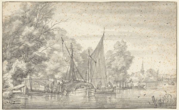 Claes Jansz Visscher created this drawing titled 'Barges Moored by Cottages' using pen and brown ink in the Netherlands. Visscher was an artist working in the Dutch Golden Age. The image is a window into the economic life of the Netherlands at that time. In the 17th century, inland waterways were the highways of the Netherlands. Barges like the ones shown were essential for transporting goods and people. This drawing shows us how the cottages were clustered along the waterways, forming small communities dependent on waterborne traffic for trade and connection to the wider world. It is through these institutional structures that the towns and villages thrived and survived. To understand this drawing better, historians can research Dutch trade routes, shipbuilding techniques, and the economic policies of the Dutch Republic. Visscher's sketch is not just a pretty picture; it's a document that reflects the social and economic structures of its time.