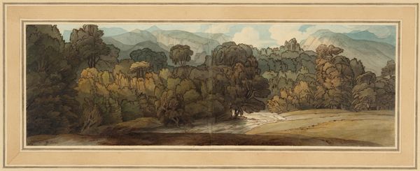 Editor: So, this watercolor, "Near Florence" by Francis Towne... it's striking how the artist uses washes to create a sense of depth. What's your take on this piece? Curator: Consider the paper itself: its texture, its source. How does that influence Towne’s application of watercolor? The pigment's origin matters too. Was it locally sourced, impacting color choices? Editor: That's a perspective I hadn't considered. So, the materials dictate the art in a way? Curator: In part, yes. Also, how does the accessibility of these materials reflect the social and economic context in which Towne was working? It affects production. Editor: I see now. Thinking about it as more than just a pretty landscape really opens it up. Curator: Precisely! It's a reminder that art is deeply connected to its material conditions.