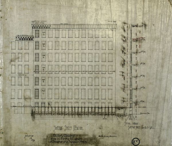 Adler and Sullivan's "Brunswick Balke Collender Company Factory Building," is an architectural drawing, likely made with graphite and ink. What's so great about drawings, even architectural ones, is that they reveal the process. The ghost of the hand is right there on the page. Look at the way the lines are so precise, yet there is a lightness of touch in the variations of the line weight. It gives the building form, but it also feels like it could be taken apart and put back together again in a different way. It's like the architects are thinking through the building, not just showing us what it will be. There’s something about the texture of the paper that makes you want to touch it. This reminds me a bit of Piranesi, another architectural fantasist. I guess art is just one big conversation across time, and it's up to us to listen in.