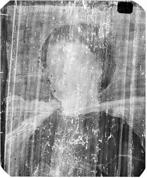 Editor: This is an X-radiograph of a portrait of Reverend Samuel Haven, by an artist from the School of Samuel King. It’s fascinating to see the inner structure revealed. How do you interpret this radiological gaze into the Reverend's portrait? Curator: It’s compelling how the X-ray exposes what is usually hidden, both in the artistic process and perhaps metaphorically, in the subject's persona. What does it mean to dissect a portrait of a religious figure in this way, stripping it down to its material composition and exposing the layers beneath? Is this a commentary on power structures? Editor: That's a great point, I hadn't considered the power dynamics. Curator: It invites us to question what we consider valuable about portraiture, and who gets to be seen, and how. Ultimately, this piece prompts us to think critically about representation and authority. Editor: I definitely learned a lot about looking at art today. Thanks!