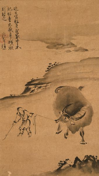 Shōkadō Shōjō created this ink-on-paper work, “Priest Xianzi Catching a Shrimp,” now at the Minneapolis Institute of Art, using swift, assured brushstrokes to capture a fleeting moment. The composition is dominated by the figure of the priest, whose posture and gaze direct our attention to the shrimp held aloft. The artist's formal choices are particularly striking. Notice how the texture of the paper interacts with the ink, creating subtle gradations of tone that suggest depth and movement. The negative space surrounding the figure not only isolates him but also emphasizes the ephemeral nature of the scene. Shōjō uses the visual economy to suggest philosophical ideas relating to Zen Buddhism, where emptiness and simplicity point to deeper truths. Consider how Shōjō’s use of line and form invites us to contemplate the relationship between the material world and the spiritual realm. This artwork serves as a site for ongoing interpretation.