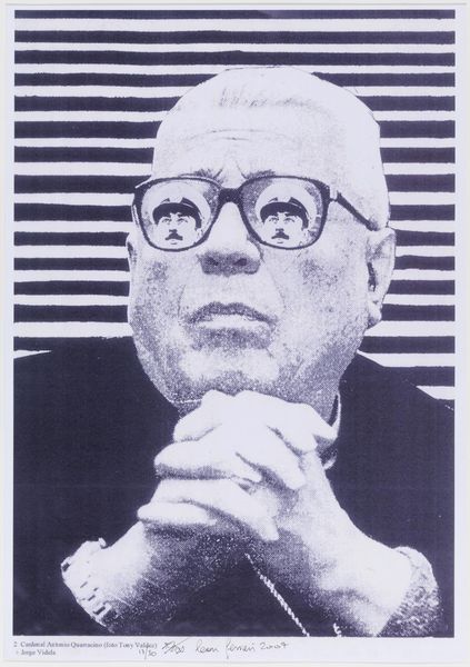 Editor: Here we have Robert Mapplethorpe's photographic portrait of Phillip Johnson. Its monochrome palette gives it a sense of gravitas, and those round glasses are so iconic. What do you see in it? Curator: Phillip Johnson, the architect, becomes an emblem here. His glasses, his suit, his very posture… they speak to a constructed persona, a carefully curated image of power and intellect. Mapplethorpe captures not just a man, but a myth. Editor: So, the photograph itself is a kind of architecture? Curator: Precisely. Both men were master builders, in their own way. Mapplethorpe, constructing an image; Johnson, an architectural legacy. The photograph becomes a testament to their combined influence and a question of their lasting impact. Editor: That gives me a new perspective on the image. Thank you.