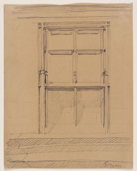 Editor: This pencil drawing, "Venster of een deur," or "Window or a Door," by Carel Adolph Lion Cachet, from around 1897, feels so fragile. It’s just a quick sketch, almost disappearing into the paper. What do you see in this seemingly simple image? Curator: The window, or door as the title suggests, acts as a powerful threshold. Thresholds are liminal spaces, rich with symbolism. Consider what a window or door traditionally represents in art - opportunity, transition, the unknown. Cachet gives us an aperture to contemplate the symbolic resonance between interior and exterior. Does it offer freedom, confinement, possibility, or memory? Editor: That's fascinating! I hadn't thought of it as a threshold. The decorative scrollwork reminds me a bit of Art Nouveau. Do you think that stylistic association would have been intentional? Curator: The inclusion of that scrolling motif certainly calls attention to the artist's period. Ask yourself, how do the lines function beyond mere representation? Notice their flow, their energy. Linear expression served to connect people with emotional landscapes in much of turn-of-the-century Symbolist and Aesthetic movement artwork, informed by notions of psychological perception. Is the window/door actually present? Editor: No, it's barely there – it feels ghostly, like a memory of a window. Curator: Exactly. It's not about architectural accuracy but about evoking something felt, something remembered, within a historical and cultural memory. Editor: So the choice of subject matter – the window itself – carries all these layered meanings. It makes me see the drawing in a completely new way! Curator: And that’s the enduring power of art - it provides a portal, doesn't it, opening us up to layers of cultural understanding and deeper reflection.
