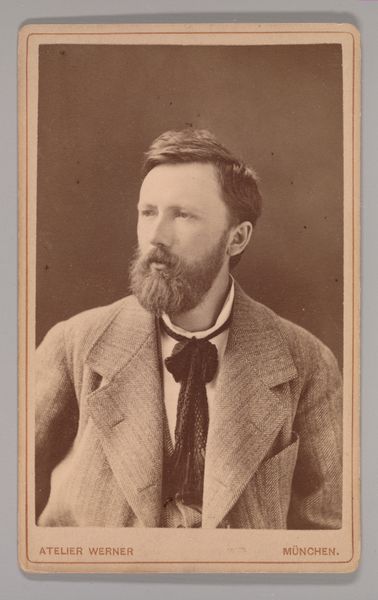 Curator: This is a photograph entitled, "Portret van de beeldhouwer Jean-Joseph-François van Hool, halffiguur," a gelatin silver print created by Joseph Dupont in 1861. Editor: It's immediately striking how contemplative and still the portrait feels. The sharp profile against the soft, neutral background makes the sculptor’s gaze particularly compelling, and that long, sculpted beard looks interesting. Curator: Exactly. Consider the context—Dupont’s photograph captures a moment of relative democratisation in portraiture. While oil portraits were still the realm of the wealthy, photography provided the emerging middle class with new opportunities for self-representation. This portrait allows us a rare glimpse into the life and self-perception of a 19th-century artist. Van Hool, the subject, gains a visual presence within a rapidly changing society. Editor: True, the materiality is fascinating. The gelatin silver print renders minute details in a rather tonal spectrum. I can't help but look at how Dupont manipulates light and shadow to reveal the planes of Van Hool’s face, accentuating the almost classical lines. It's so restrained and considered. Curator: It makes you think about who had access to visual legacy. For years, Black communities and working class people have been denied access to visibility in official portraits. What does it say about our current value system, who do we see as "important" enough to document. We need to really decolonise what we call history. Editor: Certainly, it brings the function of portraits into the critical lens, though as a study in light and form, it feels remarkably balanced and almost timeless. It's really that use of shadow to create shape I find so compelling. Curator: Ultimately, examining works such as Dupont's photography, we need to recognise art isn’t just aesthetically pleasing, but art shapes our understanding of society. We see who society wants us to look at. Editor: A lovely final reflection. It shows that portraits continue to fascinate and invite complex dialogue about not just visibility but, literally, what's in the picture.