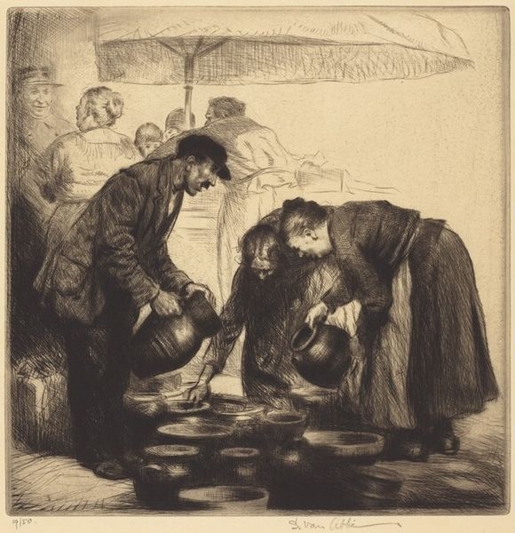 Honoré Daumier created this lithograph, "Eh!... Eh!... mais il parait que..." in France to be published in the Le Charivari newspaper. The print captures a scene within the social space of the Champs-Élysées, where a man, surrounded by onlookers, is testing his strength on a machine. Daumier uses the image to comment on the vanity of the bourgeoisie and the spectacle of public life in 19th-century Paris. The man's disheveled appearance and the reactions of those around him create a satirical critique of social pretensions. Consider the rise of mass media and visual culture during this time, where newspapers and prints played a crucial role in shaping public opinion and reflecting social norms. Daumier often used his art to critique the institutions of his time, questioning social hierarchies and norms. To understand Daumier's work fully, one might delve into the archives of Le Charivari or explore studies of French social history. Art history is not just about the artwork but also the world in which it was made and viewed.