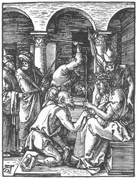Albrecht Durer rendered this woodcut, Lamentation for Christ, with striking emotional depth. Here, we witness the sorrowful scene of Christ's deposition, rich in symbolism and imbued with centuries of artistic tradition. The gesture of grief, arms raised in anguish, is not unique to Durer; it echoes through countless depictions of mourning from antiquity to the Renaissance. Consider the ancient Roman sculptures of grieving figures, their raised arms a universal expression of loss. This posture transcends time, resurfacing in various cultural and religious contexts as a primal response to suffering. The crown of thorns, discarded at Christ's feet, carries potent emotional weight, yet even here, a parallel can be drawn to ancient sun gods crowned with light, or the laurel wreaths of triumphant heroes. Such symbols, initially signifying triumph and divinity, are repurposed to underscore Christ's suffering. The power of this image lies in its ability to evoke a deep, subconscious connection to shared human experiences of grief, loss, and sacrifice, revealing how symbols evolve, adapt, and resonate across cultures and epochs.