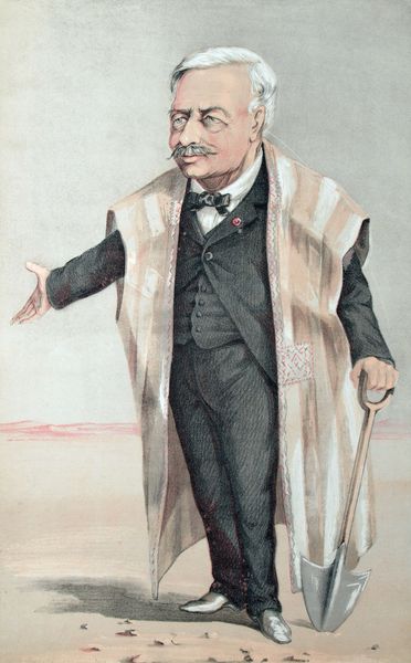 Editor: My immediate reaction is one of introspection. The subject seems weighted down, somehow, yet composed. Curator: We are looking at Jean Béraud’s 1889 oil on canvas, "Portrait d’Ernest Renan." Note the heavy impasto, particularly visible in the subject's face and hair. The materiality here gives an insight into Béraud’s technique. Editor: The thick layering speaks to me about labor – not just Renan’s intellectual labor, but Béraud’s physical labor in applying those paint layers. What effect do you believe this texture is intended to evoke? Curator: It builds an undeniable sense of presence. Béraud captures a certain heft, both intellectual and physical, emphasizing Renan’s gravity within the composition through the bold formal use of tone and texture. Semiotically, the portrait conveys not only likeness but an essence. Editor: Speaking of essence, observe how the sitter's formal attire interacts with his otherwise soft and fleshy features. I am curious to know the relationship between production costs, materials, and the portrayal of class. Curator: The dark palette, primarily blacks and browns, is intentionally subdued, allowing the stark white of Renan's hair and collar to punctuate the gloom. It is this visual economy, juxtaposed against the detail of his face, that emphasizes intellect and elevates the sitter. It's a dialogue of form itself. Editor: Béraud shows Renan’s complex internal world, perhaps more than his material circumstances. It moves beyond a mere "genre painting". Thank you for giving me some structure from which to better grasp it. Curator: A fascinating insight into Renan, through the lens and artistic skill of Jean Béraud. The weight of history hangs heavy, and appropriately so.